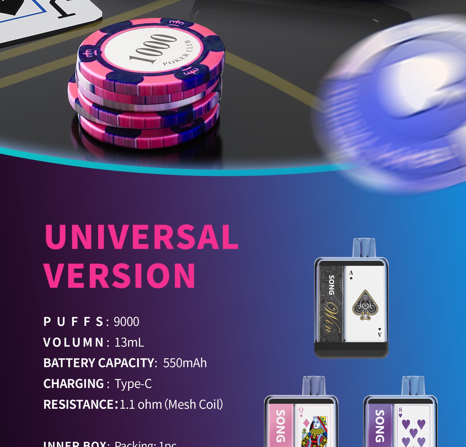 【9000口】SONG小崧 Y193C一次性拋棄式電子煙撲克系列 | (可充電)(Type-C)